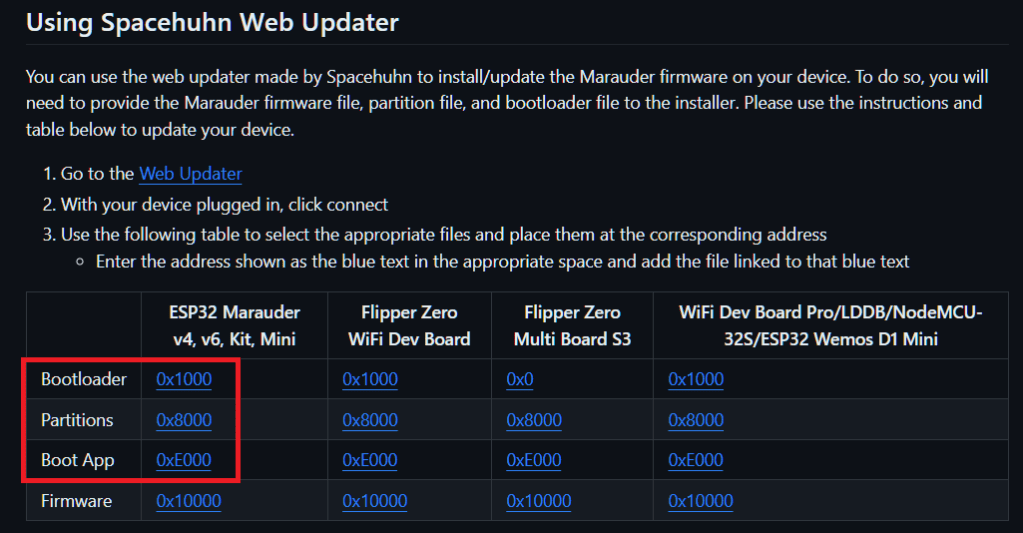 - Bootloader file from the above table